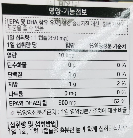 오메가3의 고용량 제품을 찾는 사람에게는 다소 아쉬운 부분이 있을 수 있어요!