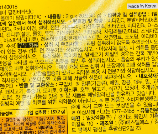 그러나 한 포당 250mg이 포함되어 있으며, 비타민 C의 함량이 낮습니다.