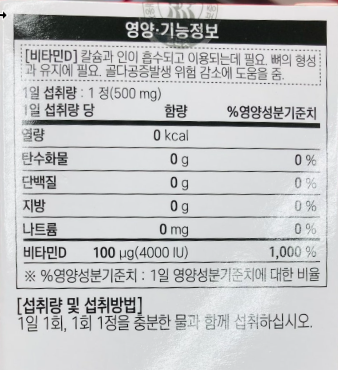 비타민D 4,000IU를 제공하여 용량이 높은 편이며,