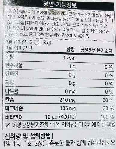 이 가격에 비타민 D까지 포함된 점은 매우 가성비가 뛰어나며,