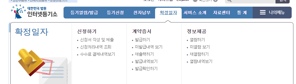 상단 메뉴에서 '확정일자'를 선택한 후,