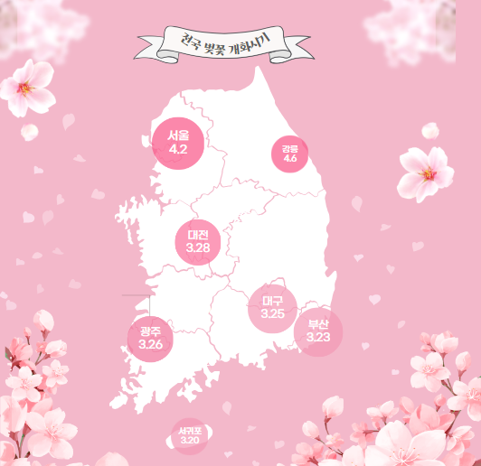 국내 각 지역별 개화시기에 대해 먼저 알아보도록 할게요!