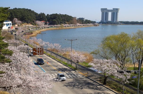 - 특징: 경포대 벚꽃축제는 경포호를 둘러싼 벚꽃과 호수의 풍경이 어우러져 장관을 이룹니다. 호수 주변을 따라 산책하며 벚꽃을 감상할 수 있으며, 다양한 공연과 체험 프로그램이 마련되어 있습니다. 특히, 호수에 비치는 벚꽃의 모습은 사진 명소로 유명합니다.